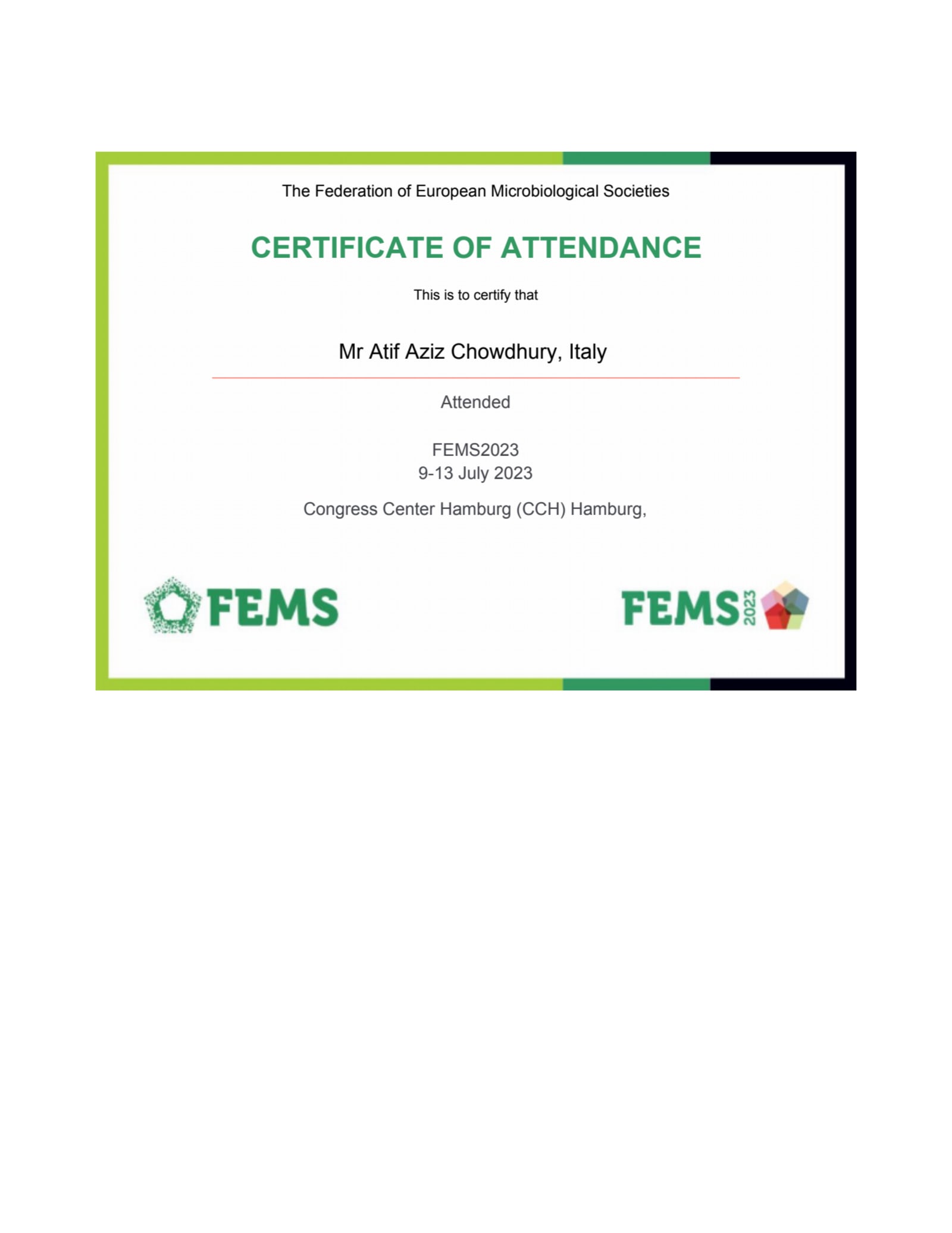 Event name: 10th Congress of European Microbiologists (FEMS2023) .Location: Hamburg, Germany .