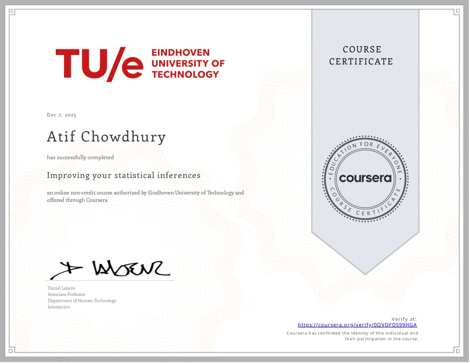 Issued by: Coursera (Eindhoven University of Technology) .