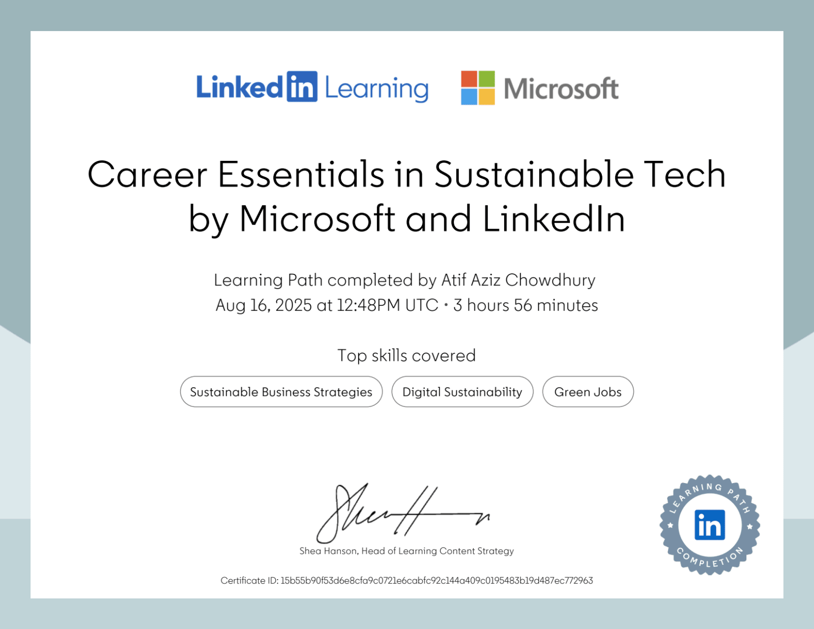 Organization: Linkedin Learning (Project Management Institute (PMI)® &Microsoft) .
